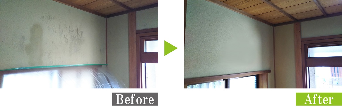 カビを除去後、G-Ecoシリーズ水性防カビ・防菌剤で防カビ・防菌剤で次回の発生を抑制しています。